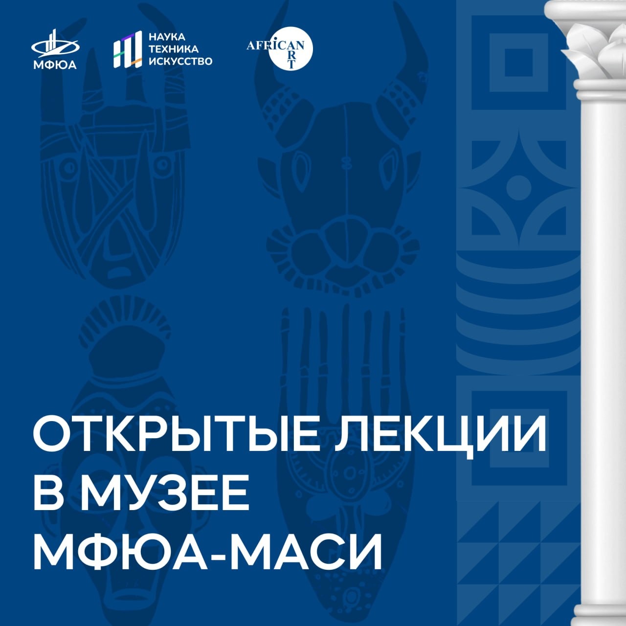 - 12 апреля в 13:00: лекция «Сфера дикарей, детей и поэтов: маски в культурах мира». Вы узнаете, какую роль маски играли в разных культурах — от Древнего Египта до народов Тропической Африки — и почему этот феномен остается важным для понимания человеческой природы.