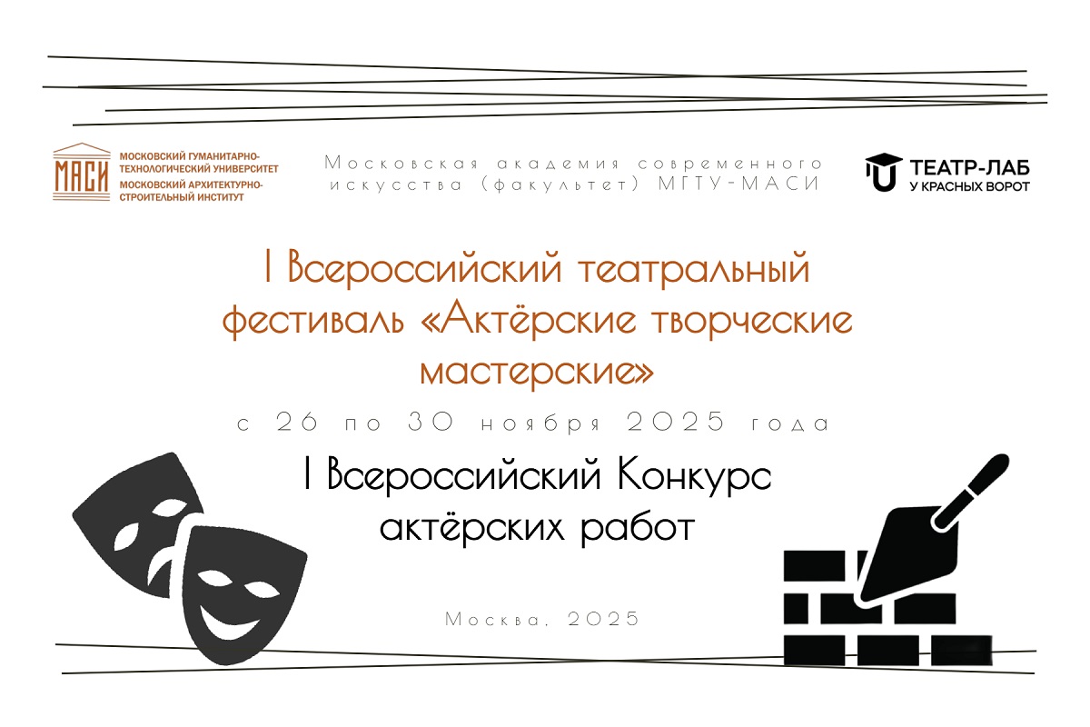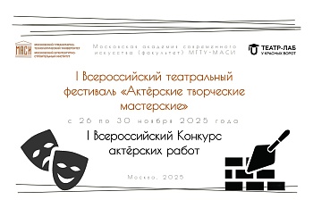 Московская академия современного искусства (факультет) МГТУ-МАСИ проводит I Всероссийский театральный фестиваль «Актёрские творческие мастерские» и I Всероссийский Конкурс актёрских работ с 26 по 30 ноября 2025 года.