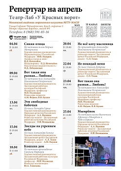 Учебный театр МГТУ-МАСИ и Театр-Лаб «У Красных ворот» Московской академии современного искусства приглашают зрителей отправиться в увлекательное путешествие по РЕПЕРТУАРУ АПРЕЛЯ!