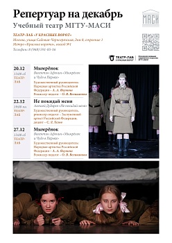 Учебный театр МГТУ-МАСИ приглашает зрителей окунуться в невероятную театральную атмосферу и посетить спектакли в исполнении студентов Московской академии современного искусства МГТУ-МАСИ под руководством кафедры «Театрального и эстрадного искусства».