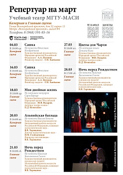 Учебный театр МГТУ-МАСИ и Театр-Лаб «У Красных ворот» при Московской академии современного искусства приглашают зрителей отправиться в сказочное, творческое и искреннее путешествие по РЕПЕРТУАРУ МАРТА!