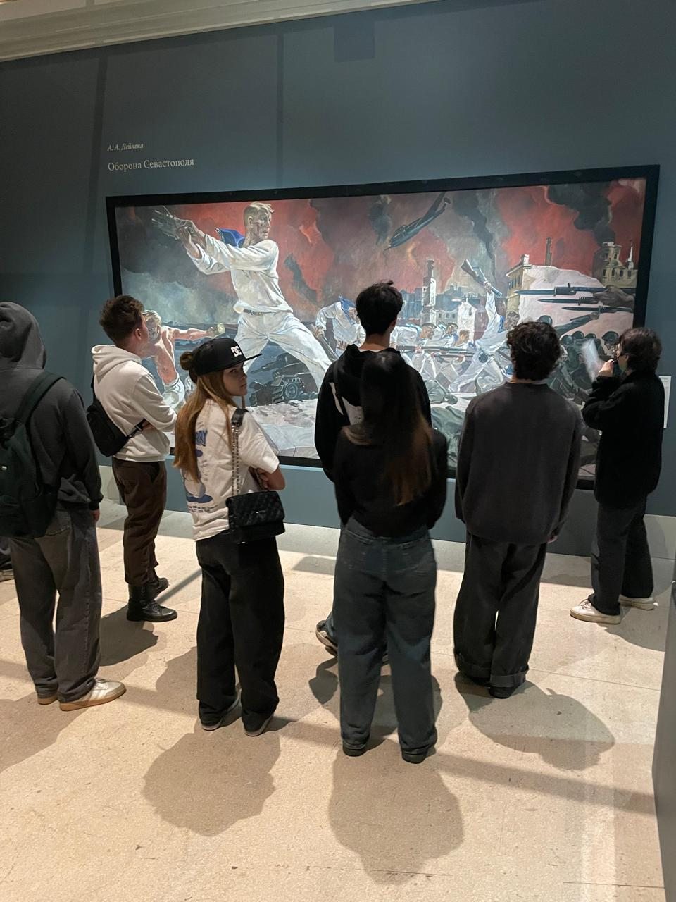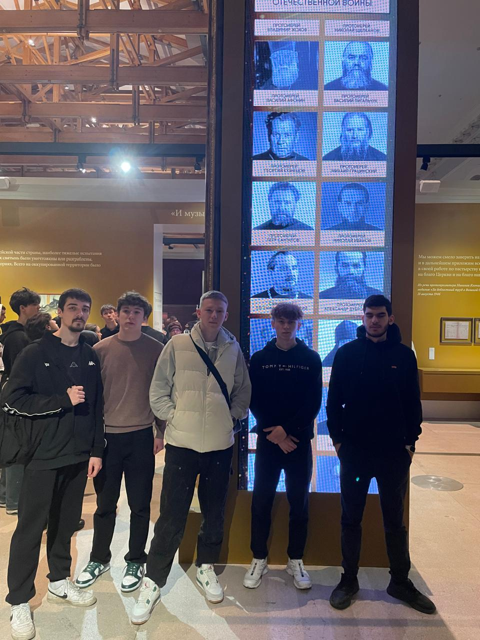 Накануне 80-летия Победы студенты кафедры «Социально-гуманитарные дисциплины» посетили тематическую выставку, посвященную подвигу советского народа в годы войны. Экспозиция, включающая уникальные архивные документы и фотографии, фронтовые письма и личные вещи солдат, позволила по-новому взглянуть на историю Великой Отечественной. Ребята увидели Знамя Победы, Акт военной капитуляции Германии от 8 мая 1945 года и Акт капитуляции Японии. Особый интерес вызвал и рассказ о помощи Русской православной церкви фронту и тылу в военные годы.