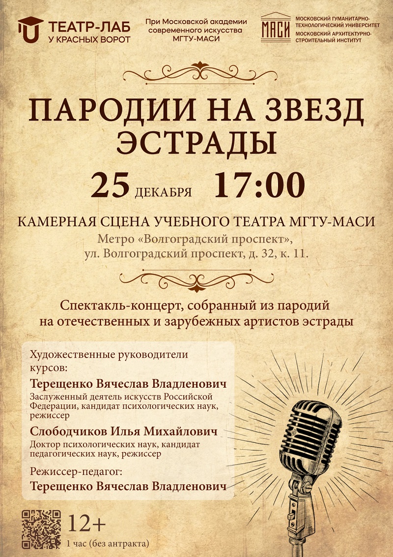 Спектакль-концерт Учебного театра МГТУ-МАСИ, собранный из учебных работ - музыкальных пародий на звезд российской и зарубежной эстрады.